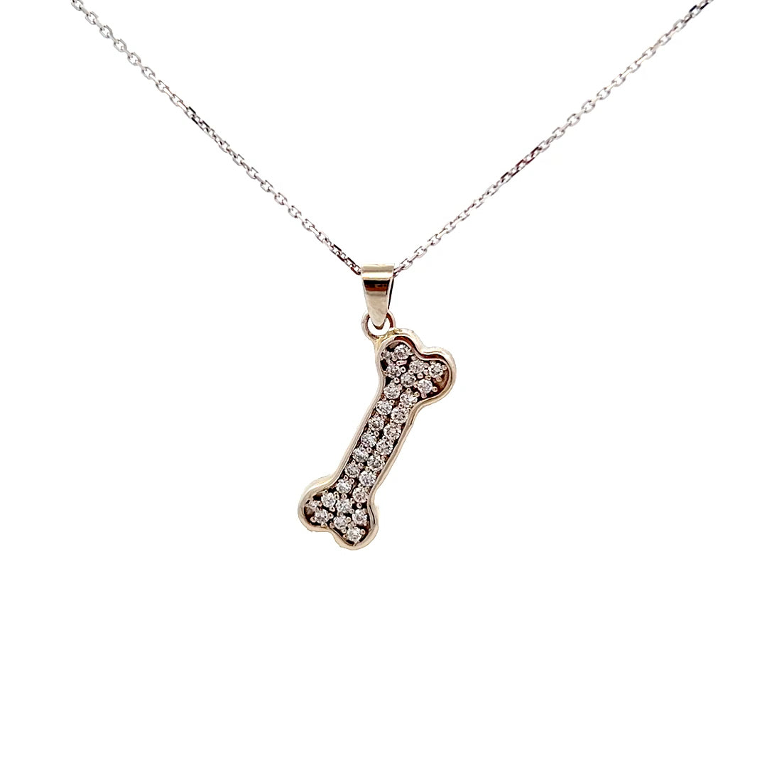 14KT White Gold dog bone diamond pendant with (28) round brilliant cut diamonds with a carat weight of 0.48ctw (Chain Sold Separately)