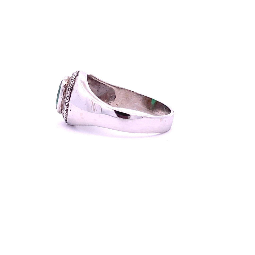14Kt W-Gold Men's Ring w/ Green & White CZs, size 10
