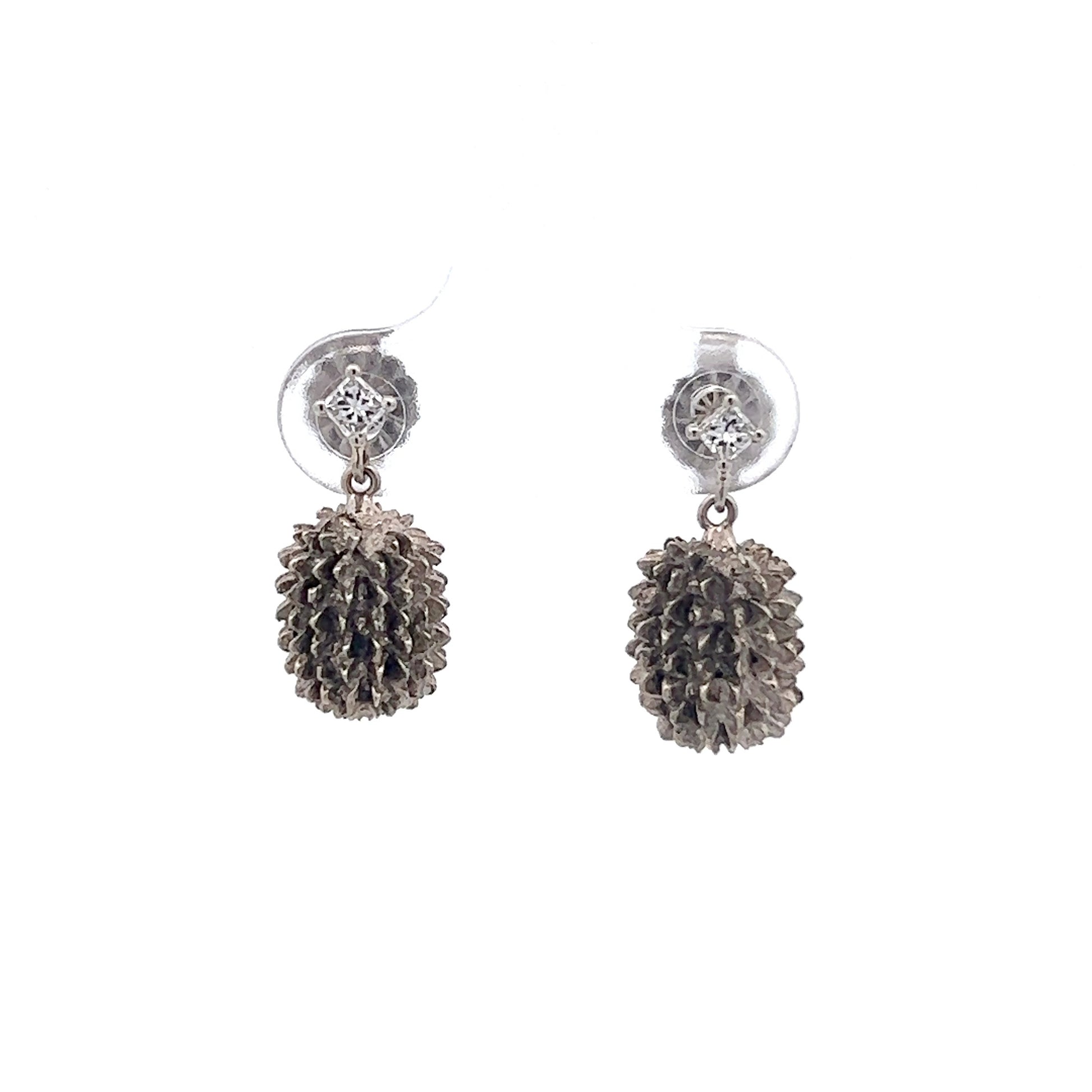14Kt W-Gold Pine Cone Earrings w/ Diamonds